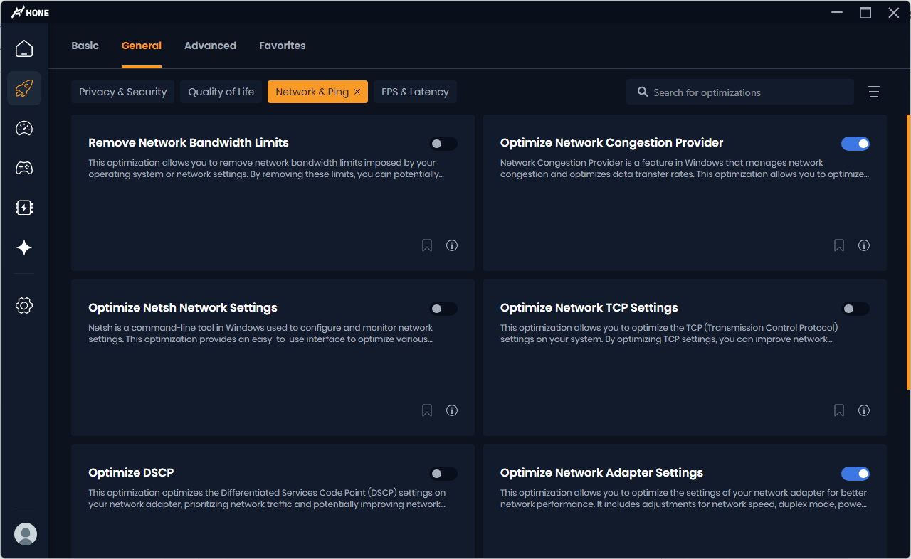 Open Hone → Network & Ping → enable “Remove Bandwidth Limits” and “Optimize Route.” Expect steadier servers and fewer rubber-bands.