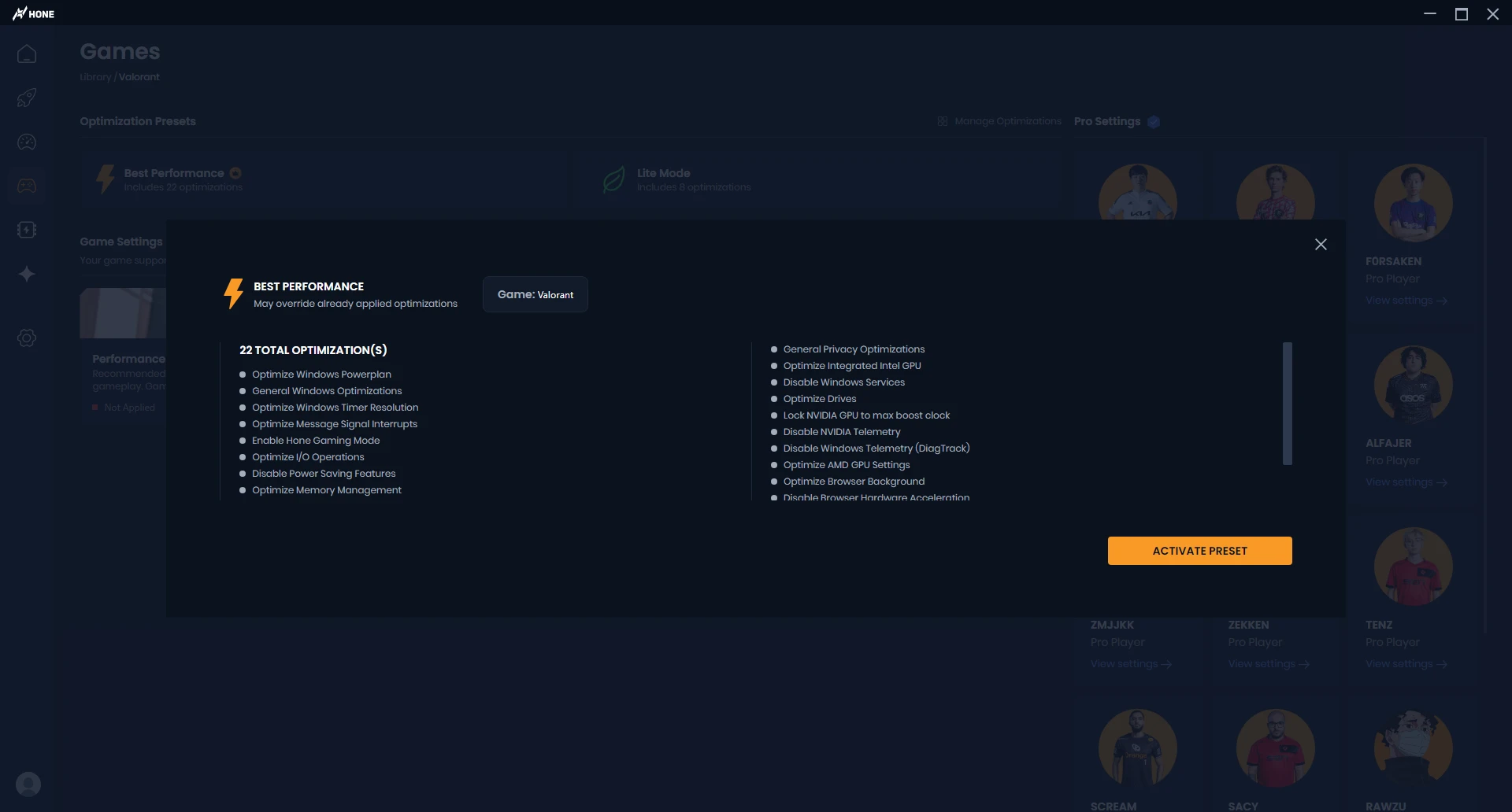 Hone provides you the tools to achieve ultimate gameplay, boost FPS by rescuing your PC from bloated software.